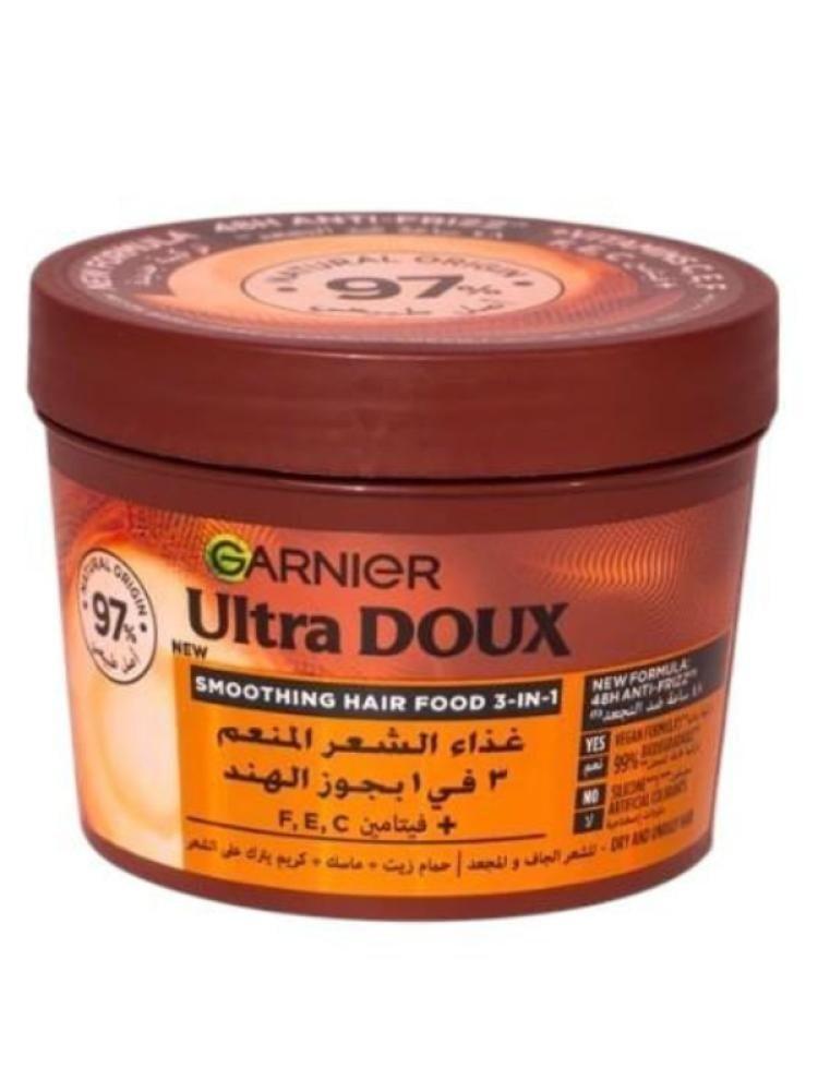 بتركيبة نباتية 100% نقدم لك ماسك الترا دو غذاء الشعر المنعم 3 في 1 بجوز الهند والماكديما من غارنيه. مزيج فريد يعمل على ترطيب وتنعيم وتغذية الشعر الجاف والمجعد من الجذور إلى الأطراف.