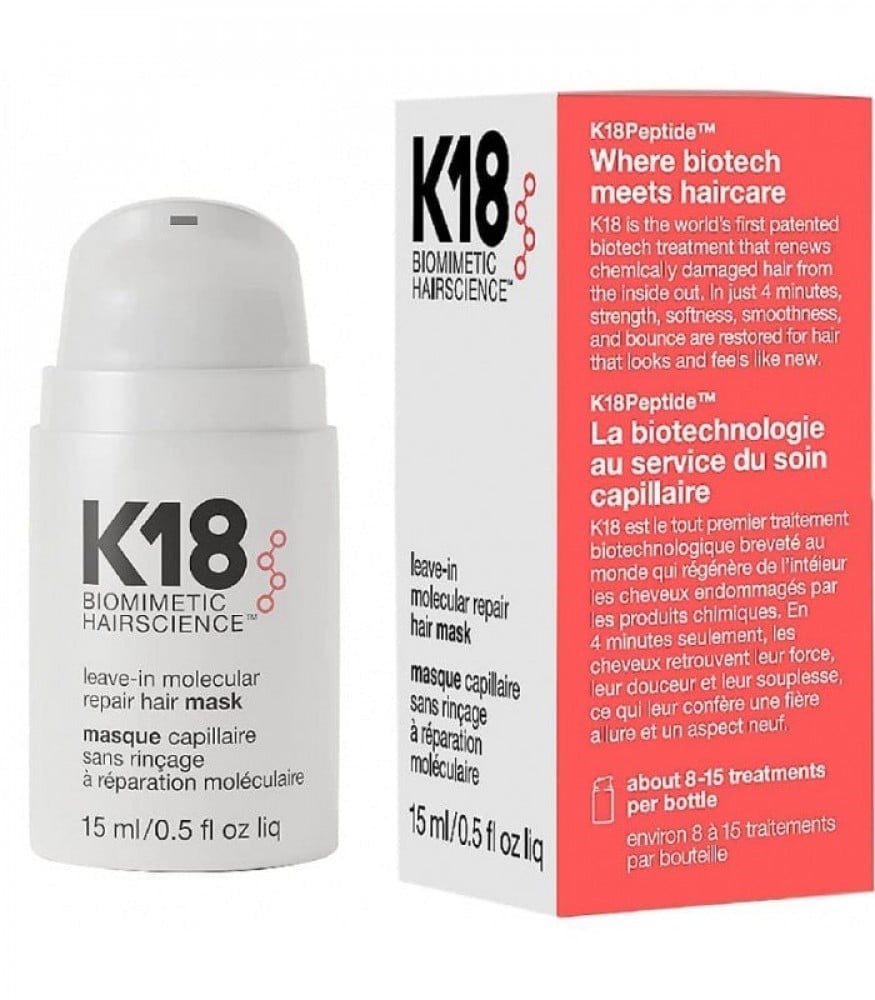 يوضع مقدار ضغطة واحدة من قناع K18 ويمكن وضع المزيد حسب الحاجة وفقًا لطول الشعر وكثافته وحالته