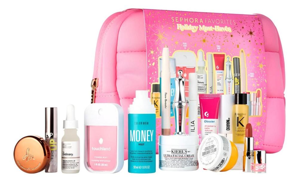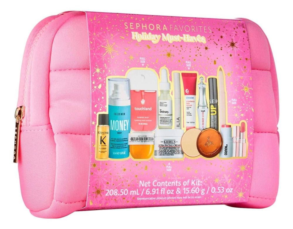 مجموعة مكياج تضم ١٤ منتجًا أساسيًا من علامات تجارية مثل دانيسا مايريكس بيوتي، وإيف سان لوران، وميك أب باي ماريو، وغيرها.
