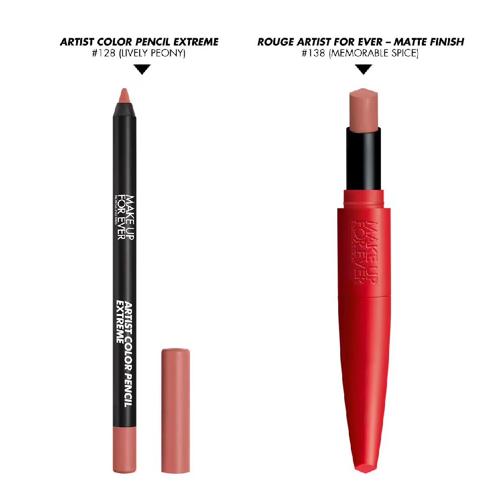 - روج آرتيست فور إيفر – مات (#138 ميمورابل سبايس): أحمر الشفاه الجديد بتركيبة تدوم حتى 16 ساعة دون الحاجة إلى إعادة الاستخدام! *ويتميز بأنه ثابت ومقاوم للماء (بلمسة نهائية ساتانية)، ومقاوم للتلطخ (بلمسة نهائية مطفية).