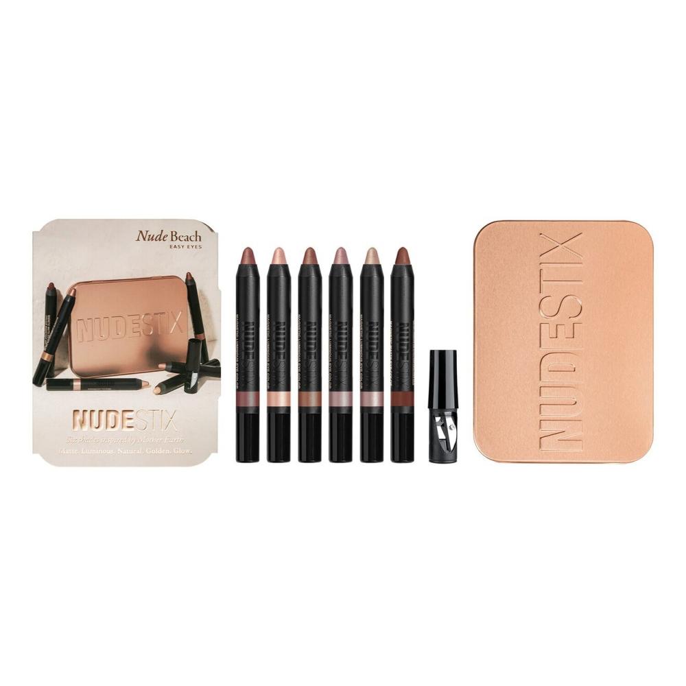 احتفالًا بذكراها السنوية العاشرة، تفخر نودستيكس بتقديم باليت نود بيتش للعيون المكون من 6 قطع. إنه مستوحى من الألوان والقوامات الموجودة على الشواطئ الرملية، وهو متوفر في إصدار محدود ويحتوي على درجات لونية ذهبية غنية تحاكي انعكاس الشمس الدافئ على المياه، والألوان الرقيقة اللامعة الموجودة داخل الأصداف، بدرجات نود وذهبية وزهرية وبنية وبرونزية وميتاليك. إنها مناسبة تمامًا للأيام التي تقضينها على الشواطئ الهادئة وأنتِ تشاهدين غروب الشمس، حيث يوفر لكِ باليت نود بيتش للعيون حلاً سهلاً وسريعًا للحصول على إطلالات مكياج عيون متعددة بألوان نود هادئة وأنيقة أو إطلالات كاملة مُبهرة تحت أشعة الشمس الدافئة.