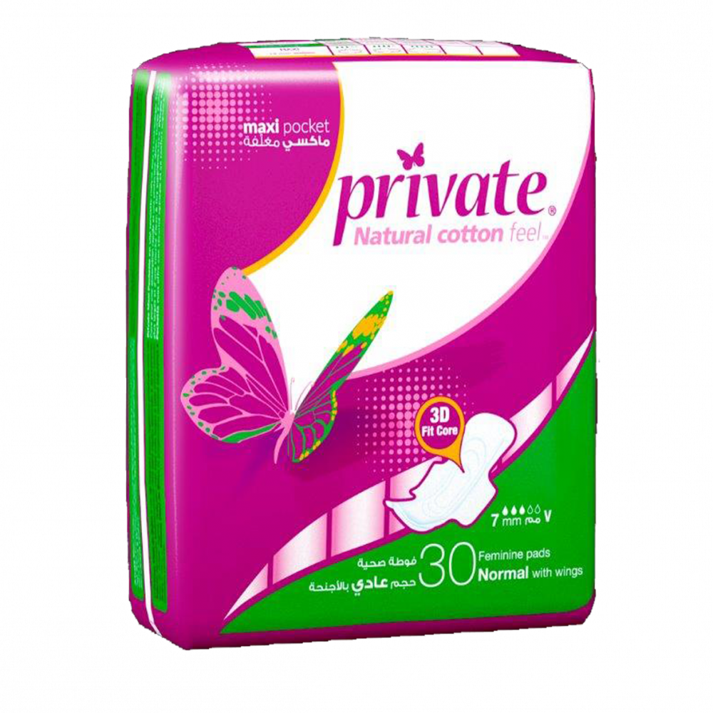 برايفت فوط صحية حجم عادي بالأجنحة بنعومة القطن الطبعي 30 فوطة