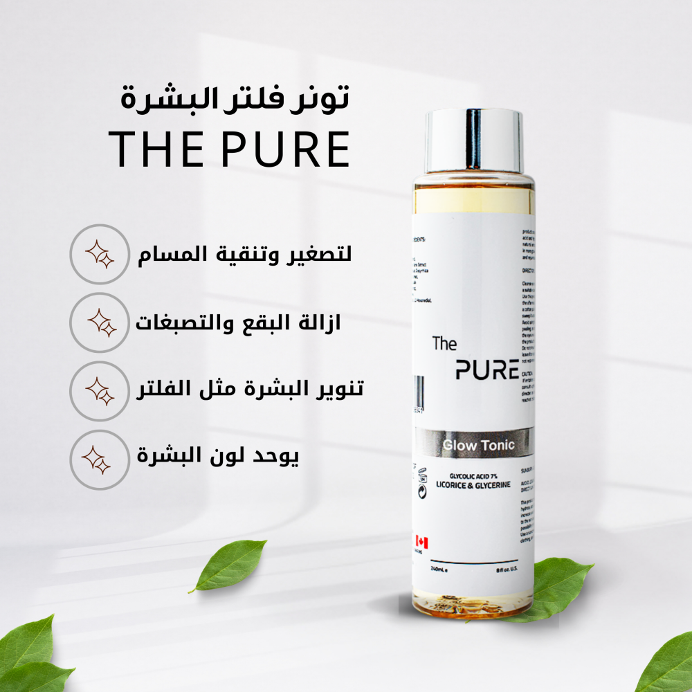 اكتشفي إشراقة بشرتك مع تونر بيور بحمض الجليكوليك بنسبة 7٪! احصلي على بشرة موحدة وأكثر نضارة، حيث يعمل على تقشير الخلايا الميتة بلطف، ويقلل من ظهور الخطوط الدقيقة والتجاعيد. استخدميه بانتظام لتحصلي على بشرة ناعمة ومشرقة كل يوم..